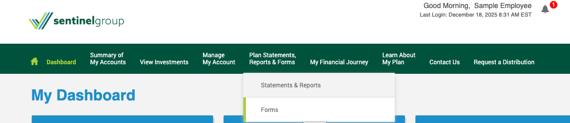 - No Form? If you do not yet have any funds in your plan the form will not generate. Please either Contact Us to get a manual copy, or wait until your first payroll deposit to generate the online form.