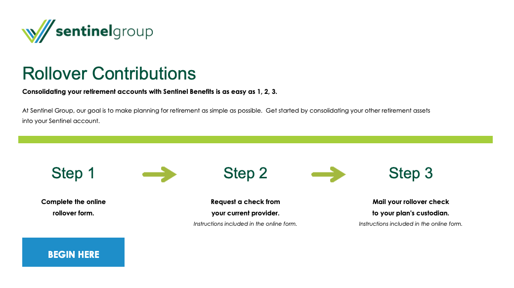 To consolidate your retirement assets into your Sentinel account, log into your online account to begin the process.