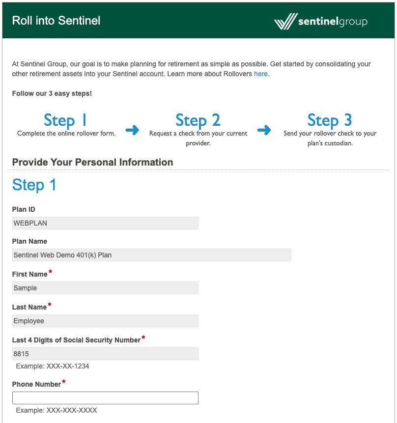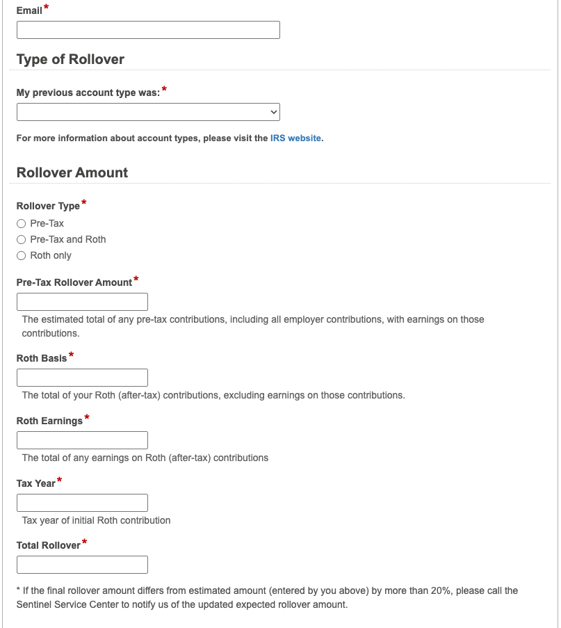 Example of the online rollover form: